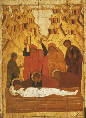 She weeps outside the tomb, longing for her Lord to be present to her. Faithfully she followed the Lord throughout His ministry and to the very foot of the cross. He will choose her to be the first witness of His Resurrection and become the apostle to the Apostles.